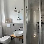 Moderne Ferienwohnung Fuer Urlauber Und Monteure includes a walk-in shower and a separate toilet for your comfort. Hairdryers, toiletries, and towels can also be found.